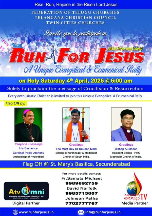 Participants from different churches, ministries, and communities are coming together with great enthusiasm to be part of this movement. The run is not just a physical activity but also a spiritual declaration, spreading the message of hope, love, and faith in Jesus throughout the region. With such a wide reach across Telangana, Run For Jesus is becoming a significant event that unites people from various backgrounds under one mission—to glorify God and inspire lives.